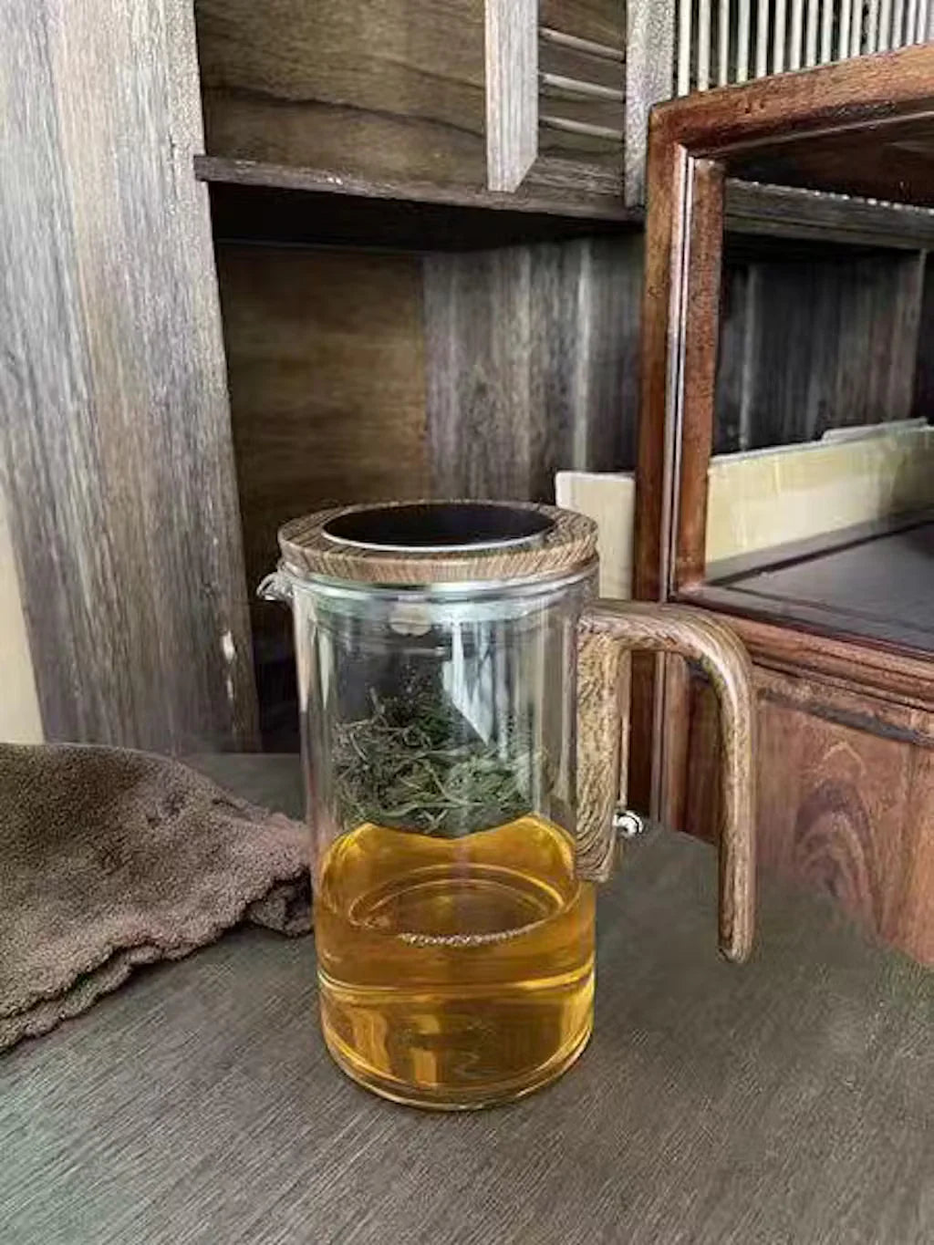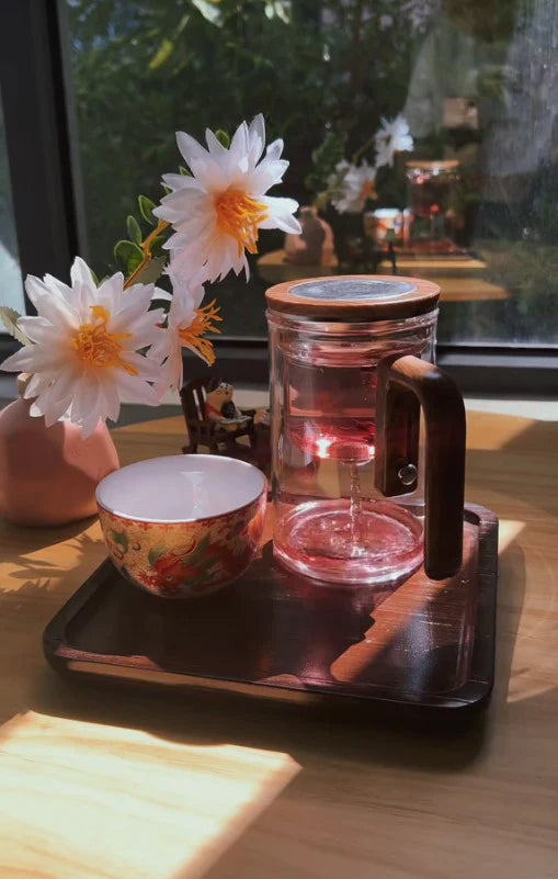 Our teapot’s elegant design showcases your tea as it brews, with a transparent glass body and warm wood accents that bring simplicity and elegance to every moment.